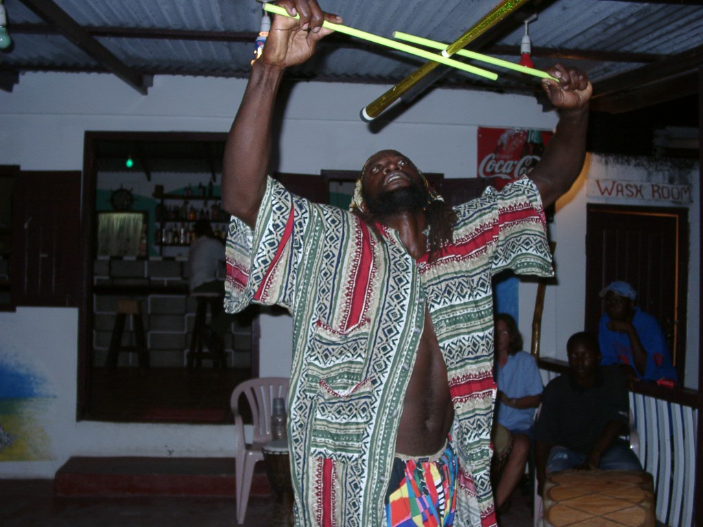 > 27 Carriacou, Tyrell Bay. Lambi Queens Bar, stickman.JPG