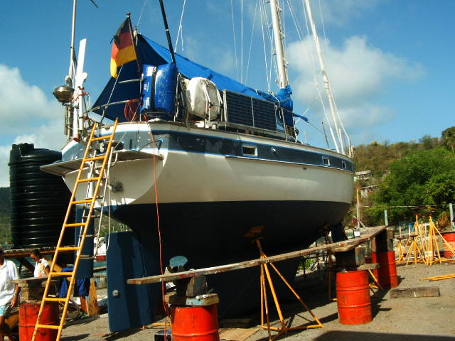 > 14 Carriacou, Tyrell Bay, aufgebockt.JPG