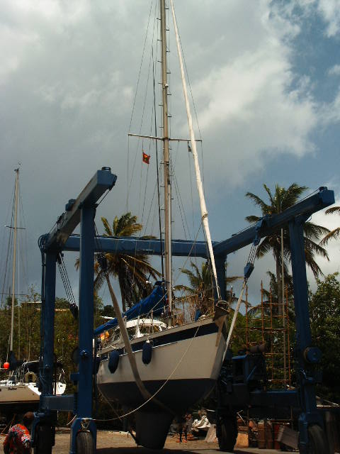 > 25 Carriacou, Tyrell Bay, CARPE DIEM kommt wieder ins Wasser.JPG