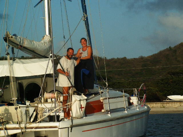44 Carriacou, Tyrell Bay, Gaby und Hans auf der September.JPG