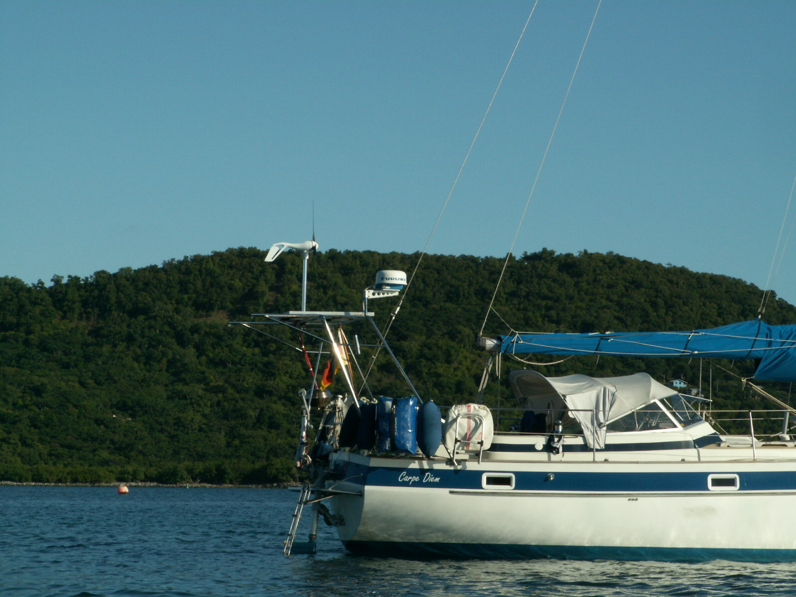 Die "Carpe Diem" bekommt einen Geräteträger vor Carriacou